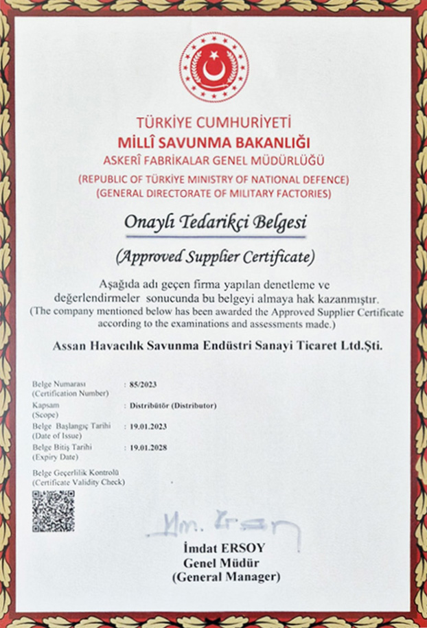 Assan Aviation is an approved supplier of Turkish Ministry of Defense.